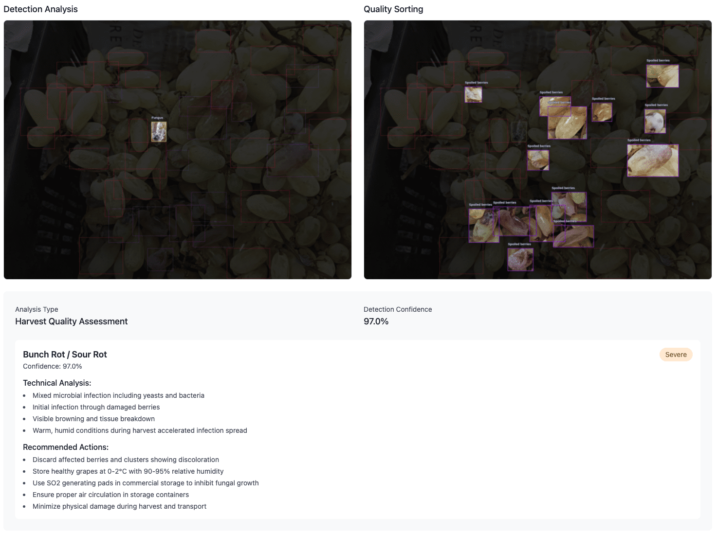 - Improved Yield Quality and Quantity: The AI system’s early detection capabilities and precise recommendations led to healthier vines and a 20% increase in yield compared to the previous season.
